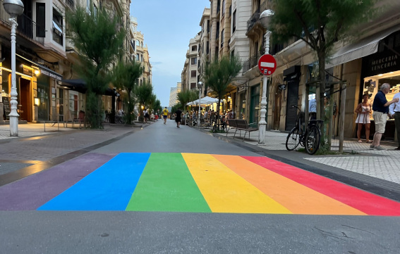 Eta efemeride hori ospatzeko aurten abian jarritako ekimenen barruan, ortzadar bandera bat margotu da Peña eta Goñi kalearen eta Gros auzoko Kolon pasealekuaren artean. Iñigo Garcia Inklusio zinegotziak azpimarratu duenez, «lehen aldiz, gure hiriak LGTBIQ+ banderaren koloreak jarri ditu zebrabide batean, eta, horrela, keinu hori jada errespetuaren, aniztasunaren eta eskubideen ikur bihurtu duten beste hiri batzuekin bat egin du. Bide publikora eramateko modu bat, egun bakar batetik harago, pertsona guztiak zaindu eta errespetatu nahi dituen hiri batean bizitzeagatik sentitzen dugun harrotasuna. Ez da lurrean egindako pintura bat bakarrik: Donostian diskriminaziorako lekurik ez dagoela eta hiri askeago, anitzago eta inklusiboago baterantz ibiltzen jarraitzen dugula dioen mezu argia da».