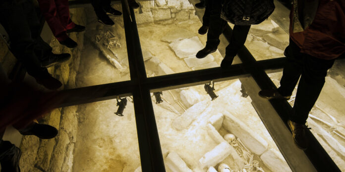 Gure arbasoen historia gertutik ezagutu ahal izango da gaurdaino bikain kontserbatu den lurpeko aztarnategian, kristalezko zoruaren gainean. Nork daki Burdin Aroko aztarnen artean, jaioberri baten hilobia aurkitu zela? Hau izango ote da gure zarauztar arbasorik zaharrena? Jarraian Erdi Aroko gure aitona-amonen “aitona-amonak” izango liratekeen VIII. eta IX. mendeko hilobi kristauak bisitatuko dira, Gipuzkoan ezagutzen diren zaharrenak. Beraien hilobiratze erritoez, bizitza baldintzez eta bizimoduaz hitz egingo da, gaur egungo garaien oso desberdinak. Hilobi horien artean, adibidez, Zarauz familiaren hilobia aurkitzen da, antzina Zarauzko familiarik garrantzitsua izan zena; Torre Luzea, Kanpandorrea eta Narros Jauregiko jabeak izan zirenak, besteak beste.