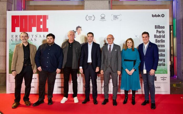 Imanol Pradales Lehendakaria ‘Popel’ dokumentalaren aurkezpenean izan da gaur arratsaldean, Bilboko BBK Aretoan.